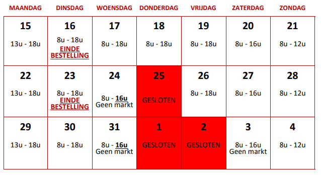 Vanaf vrijdag 8 januari zijn de winkels opnieuw open en staan we opnieuw op de markt.